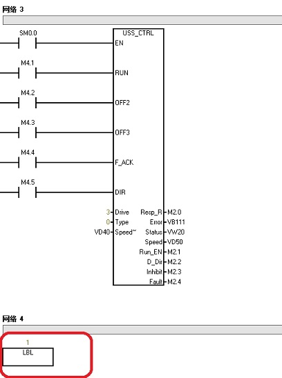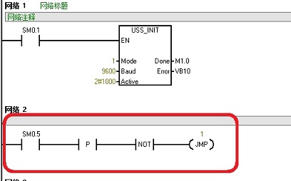 這是USS通訊的一個簡單例程,我們需要在程序中添加紅框的兩個程序,做一個延時,圖中我用的是0.5s的脈沖,要是覺得慢也可以使用100ms等的脈沖