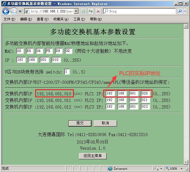 1.通過瀏覽器(地址欄輸入:192.168.1.222)進入到多功能交換機后門設(shè)置界面里參數(shù)設(shè)置如下。