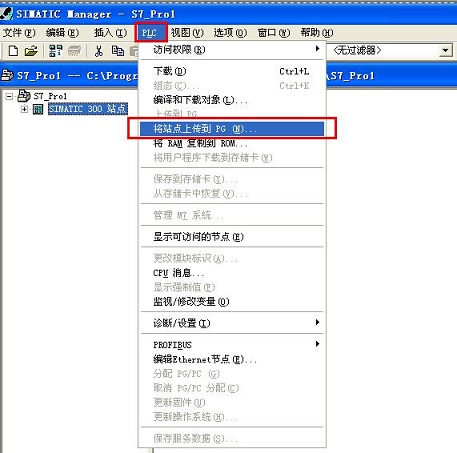 4、建立好新項目之后,點擊PLC,選擇將站點上傳到PG,在上傳的過程中系統(tǒng)會提示您需要填入節(jié)點的IP地址,這里只需要填寫您所使用的大連德嘉