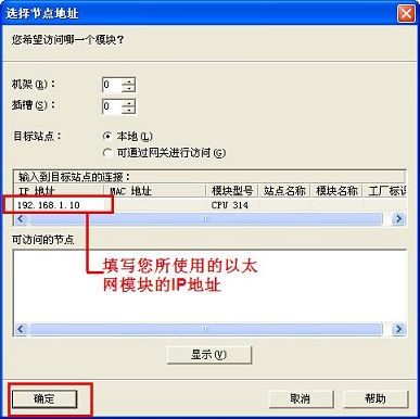 的以太網(wǎng)模塊的IP地址即可,最后點擊確認(rèn)